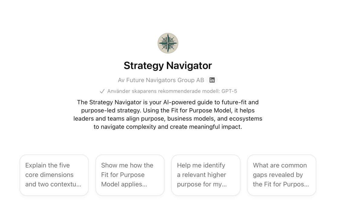 The Strategy Navigator is a Custom GPT — an AI-powered tool that acts as a reflective partner. It is designed to help leaders and consultants to: